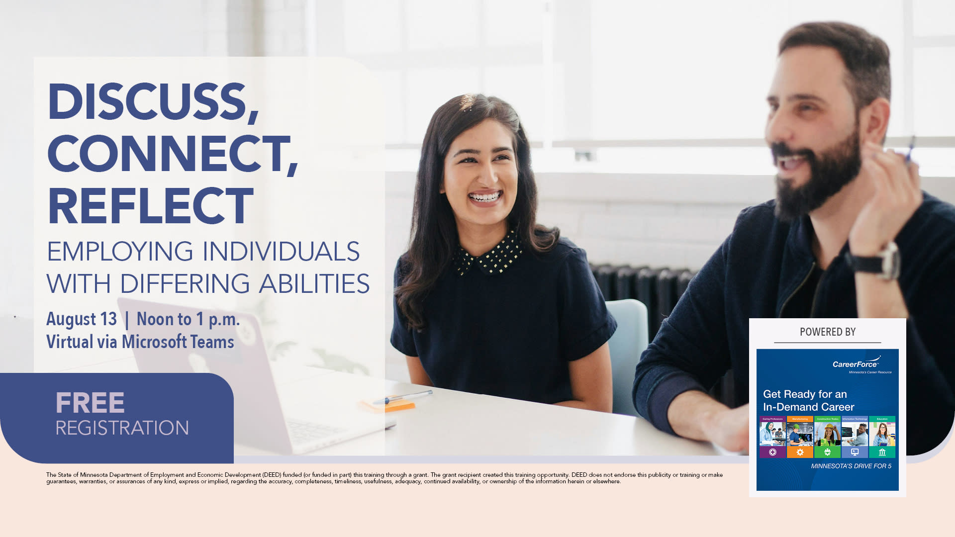 The State of Minnesota Department of Employment and Economic Development (DEED) funded (or funded in part) this training through a grant. The grant recipient created this training opportunity. DEED does not endorse this publicity or training or make guarantees, warranties, or assurances of any kind, express or implied, regarding the accuracy, completeness, timeliness, usefulness, adequacy, continued availability, or ownership of the information herein or elsewhere.