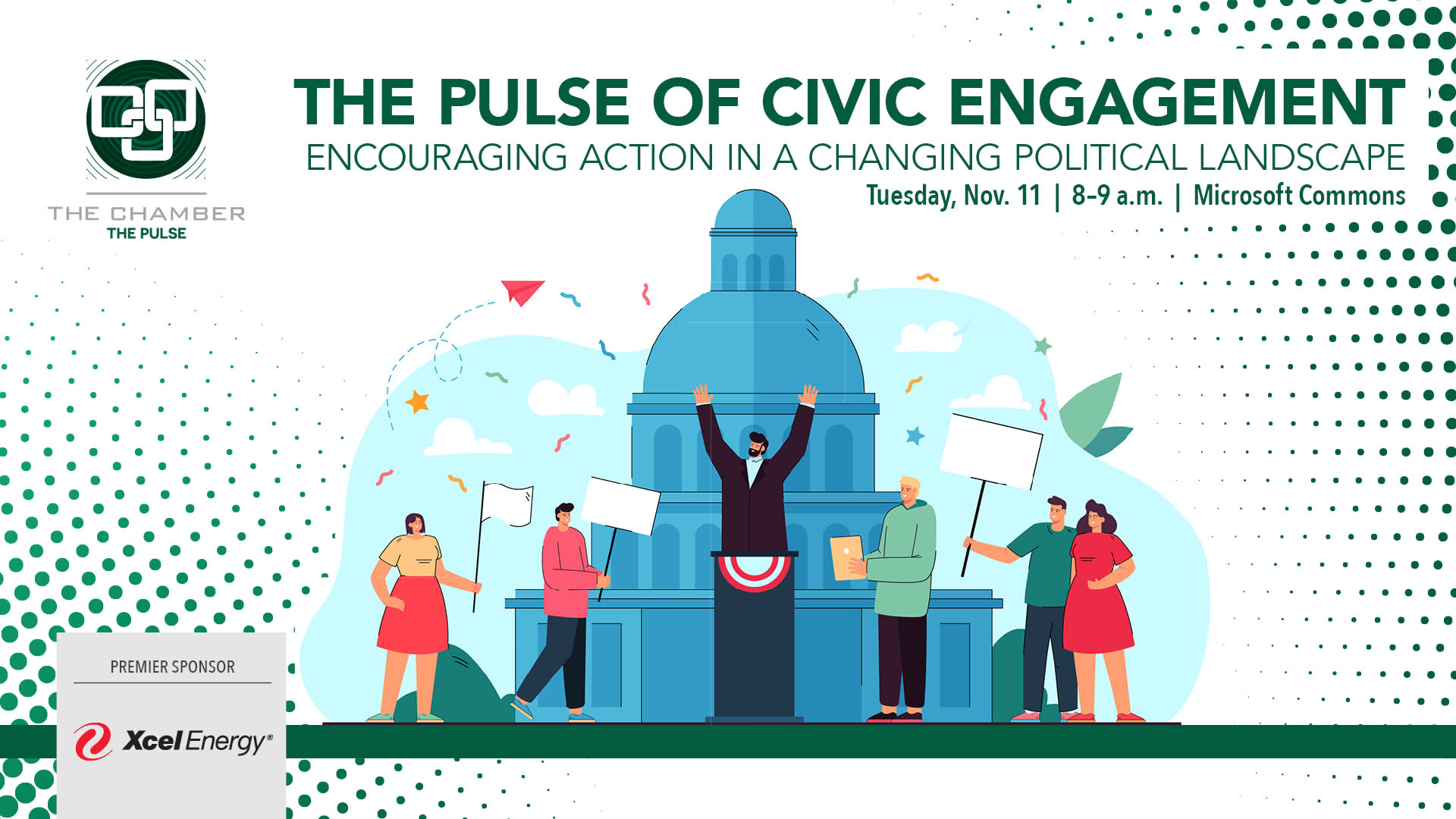 The Pulse of Civic Engagement explores how the business community can actively participate in public service while supporting employees who want to do the same. We'll also discuss the Center for Civic Engagement (CCE), a new Chamber initiative designed to equip businesses and individuals with the tools, resources and insights needed to engage meaningfully in civic life.